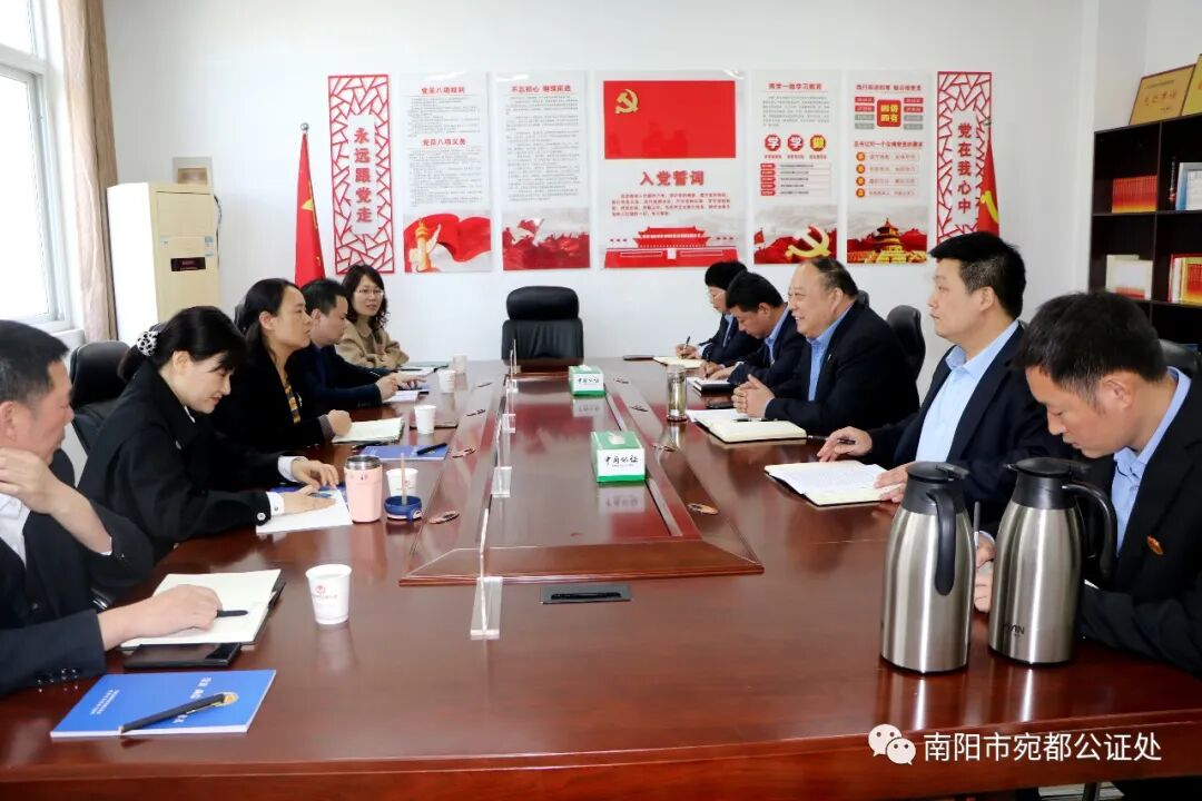 在南阳市宛都公证处主任王建新的陪同下,邢慧颖一行先后参观了我处办公场所和档案室,并详细了解了我处公证业务开展情况。